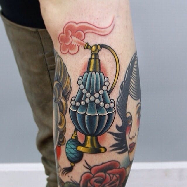 Estranho como pode parecer, mas este é definitivamente acontecendo lá fora. Mais e mais pessoas estão começando a ficar tatuagens coloridas frascos de perfume em sua pele. A principal razão para esta escolha é a elegância. Perfumes são sempre símbolos de elegância e luxo. No mundo real, o mais caro o perfume é, quanto mais extravagante o recipiente será. Esta relação, de alguma forma, foi adaptado para a tatuagem—elegantes garrafas com um toque de exagero no conceito.