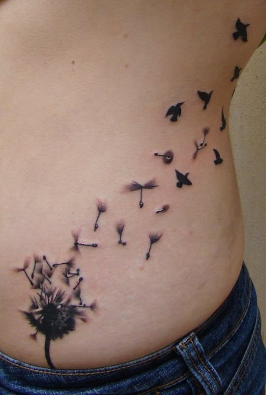 Dente-de-leão tatuagens são geralmente usadas por cima do ombro, mas pode praticamente ser cobertos em qualquer lugar no corpo. Esta tatuagem é feito geralmente em tinta preta. O motivo popular para esta flor selvagem é ter um dente-de-leão tatuado junto com o vôo de sementes. O vôo de sementes são muitas vezes substituídos por pássaros voando, ou corações, etc. Você também pode ter toda a planta dente-de-leão, todas as raízes e caules juntos, tatuado em seu corpo. Além disso, você pode adicionar um pouco de cor para a tatuagem por ter um plano de fundo sombreado.