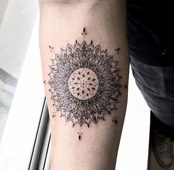 Na verdade, os tatuadores têm que tomar sobre si para fazer já o desenho intrincado ainda mais complexo, ilustrando o hipnótico recorrentes de camadas e padrões da mandala flor, utilizando uma série de estrategicamente colocadas em pontos, conhecido como dotwork ou pontilhismo.